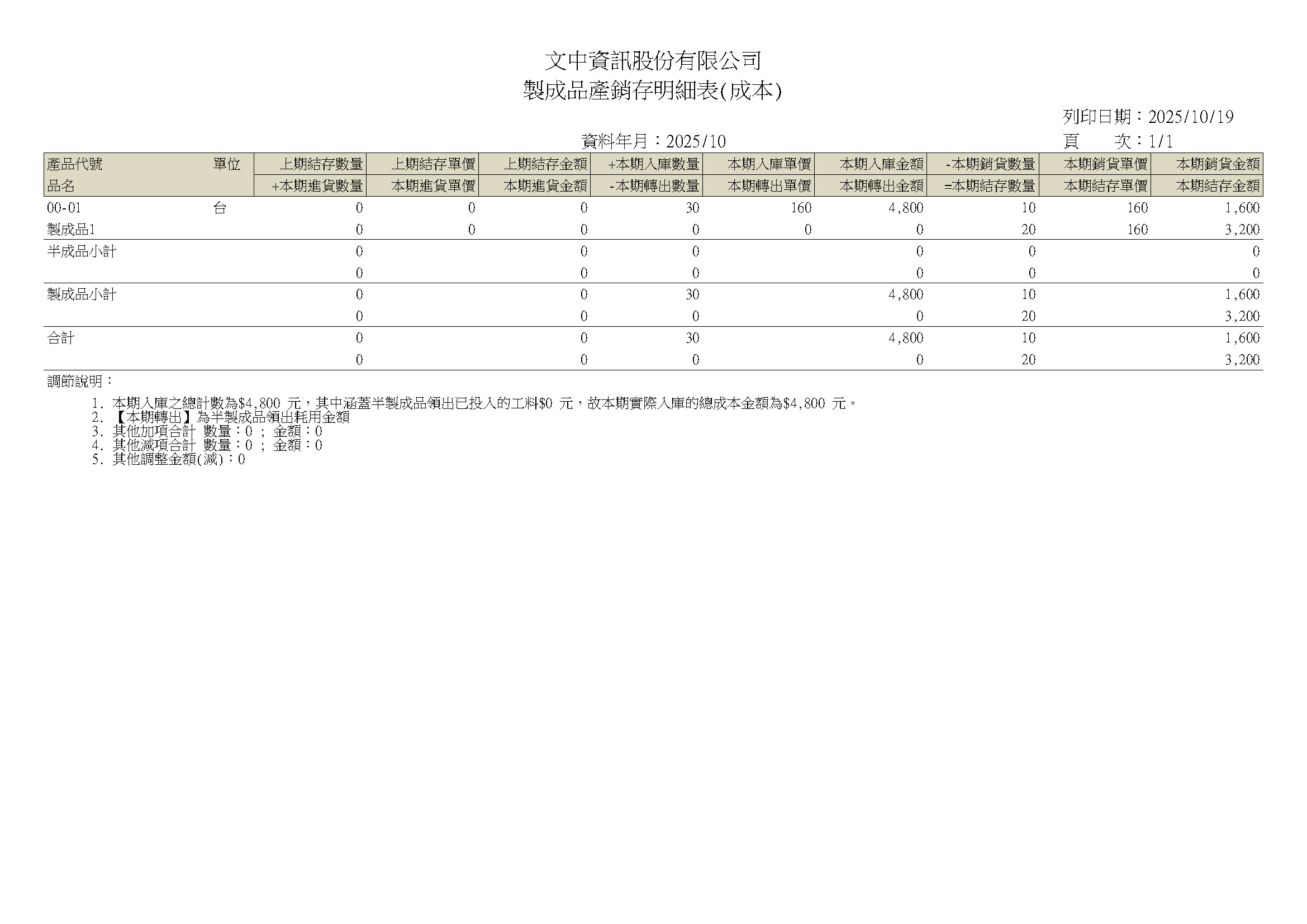 製成品產銷存-成本